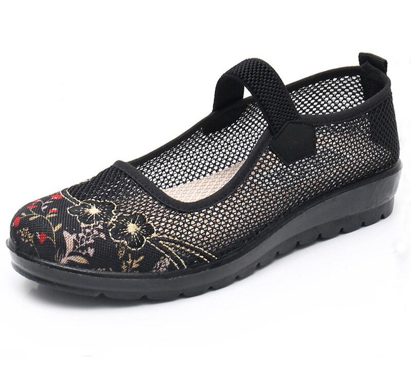Womens Breathable Mesh Mary Jane Flat Shoes Lightweight Old Lady Non Slip Causal Shoes