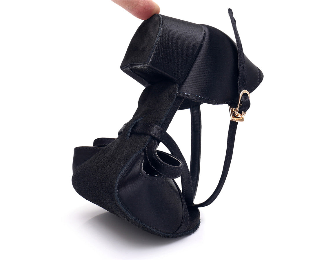 Girls Crisscross Straps Beginner Ballroom Dance Shoes Cutout Silk Peep-toe Latin Tango Social Dance Shoes Practice Low Heels
