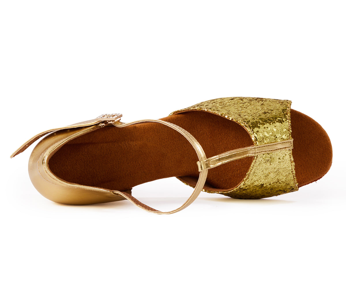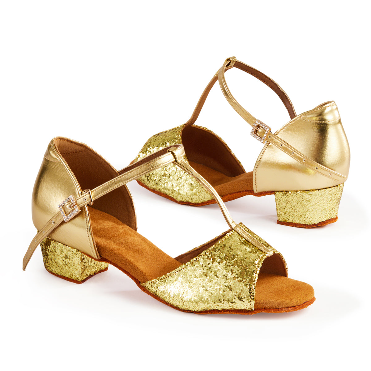 missfiona Girls Glitter T-strap Ballroom Party Dancing Shoes Women Pu Leather Beginner Low Heels