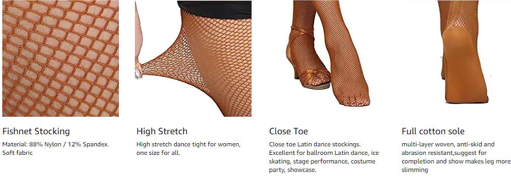 Hard network professional Latin fishnet stocking tights for Latin dance, both for women and girls. 3 colors available: Tan (Darker), Nude(Lighter) and Black. Seamless/seamed footed fishnet tights for dancers,wonderful match for ballroom Latin dance, ice skating, stage performance, fashion show, also fit for daily wear.