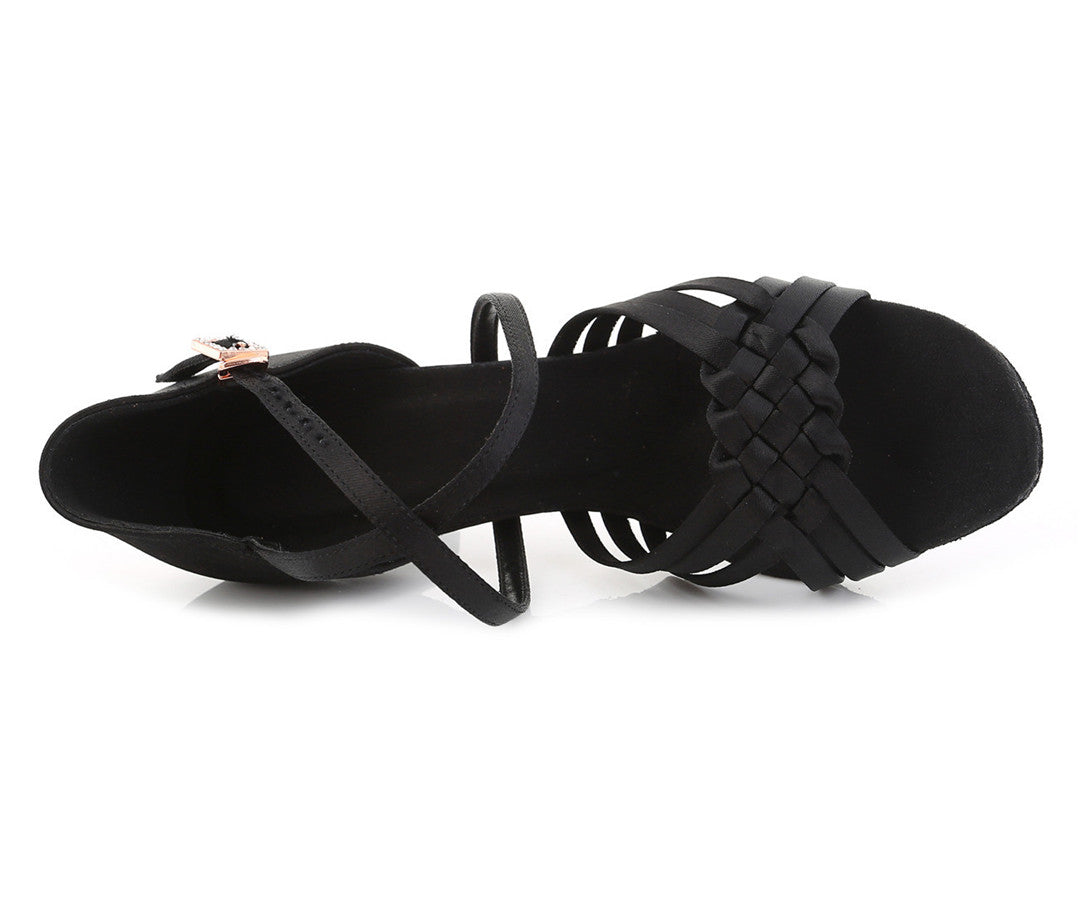 Womens Satin Braided Latin Salsa Dance Shoes Ballroom Peep-Toe 6cm Dancing Heels