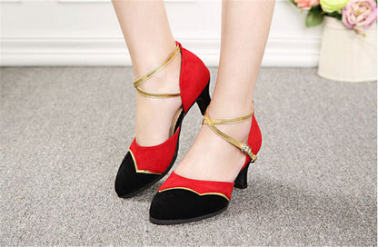 Womens Two Tone Velvet Ballrom Dance Shoes Close Toe Soft Suede Sole Latin Salsa Tango Dancing Heels